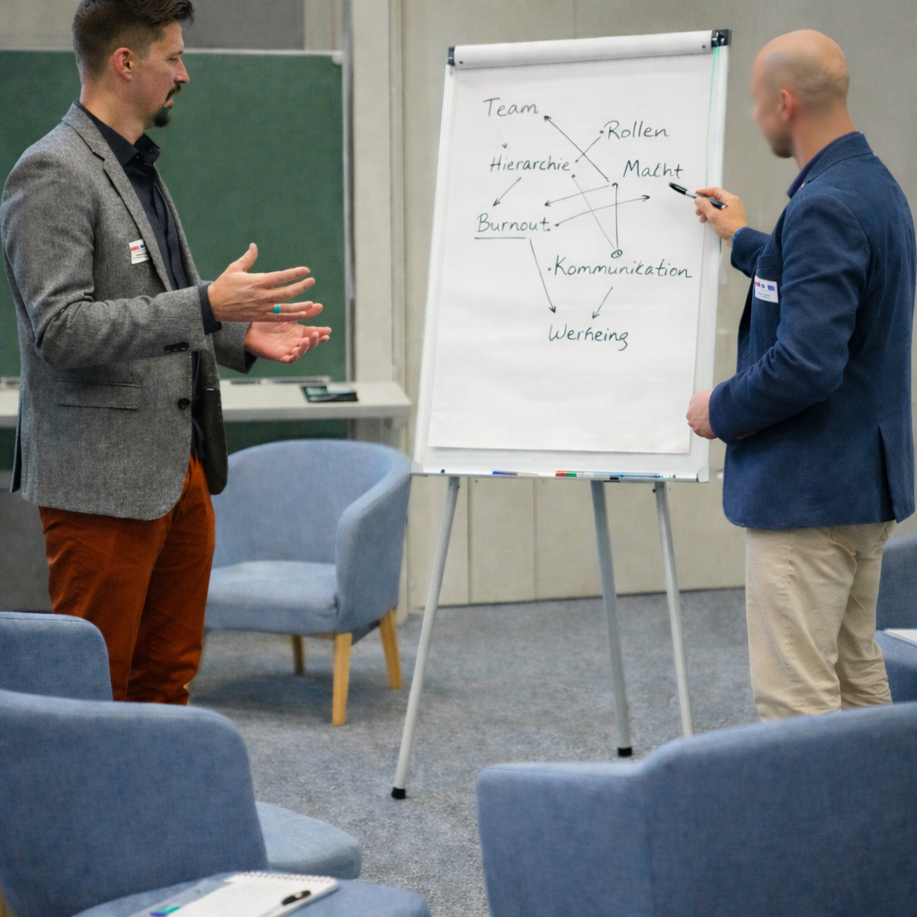 Methodenvielfalt wie u.a. Soziokratie, agiles Management, Theorie U, World Café um Zusammenarbeit zu stärken und sich als Team zu entwickeln.